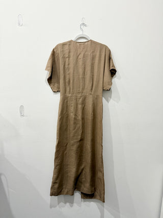 & other stories 100% Linen Short Sleeve Wrap Maxi Dress Beige Women's Size 8