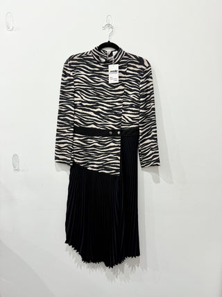 A.L.C Peyton Zebra Stripe Print Pleated Midi Dress Black/White Women's Size 6