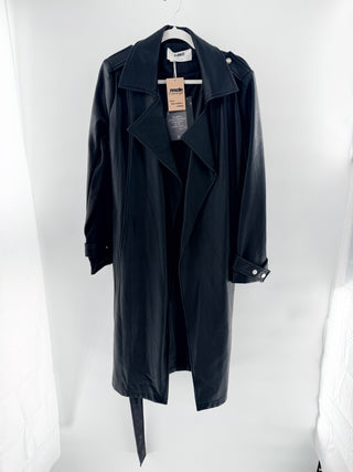 4th and reckless faux leather trench coat featuring relaxed silhouette with oversized lapels and adjustable waist tie, 2