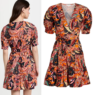 A.L.C. Carey Cotton Puff Sleeve Belted Mini Fit & Flare Dress Orange Women's 4