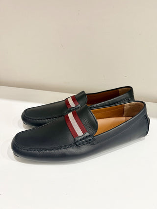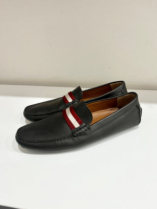 Bally Perthy Leather Loafers Black w/ Red and White Stripe Men's Size 12