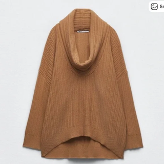 Zara Dolman Sleeve Cowl Neck Ribbed Oversized Pullover Sweater Toffee Camel Med