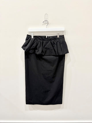 Zara High Waisted Ruffle Peplum Straight Pencil Midi Skirt Black Women's Size S