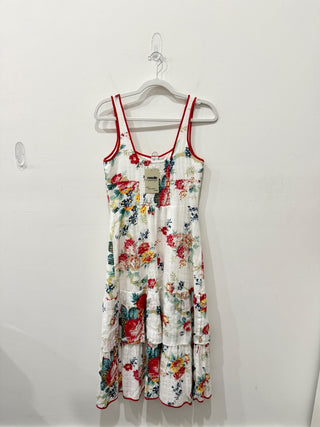 Betsey Johnson Riviera Tiered Floral A-Line Midi Dress White/Red Women's Size XS