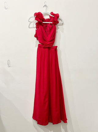 Billy J Galilhai Ruffle V-Neck Side Cutout Maxi Dress Red Women's AUS 6 / US 2