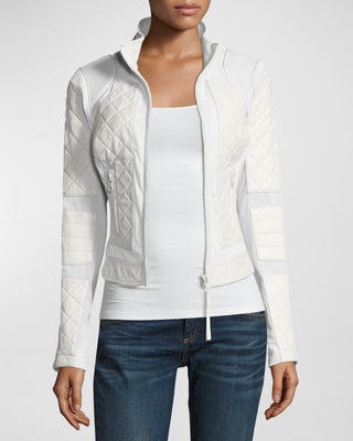 Blanc Noir Quilted Leather & Mesh Full Zip Moto Jacket White Women's Size Small