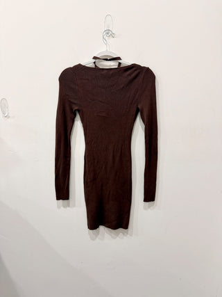 C. Luce Cape Sleeve Back Slit Shift Midi Dress Khaki Brown Women's Size Small