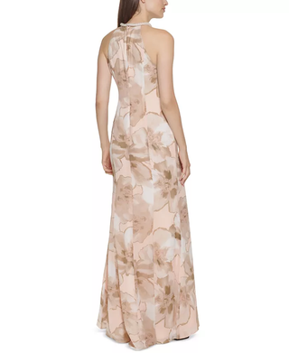 Calvin Klein Floral-Print Sleeveless Halter Maxi Dress Pink/Beige Women's Size M