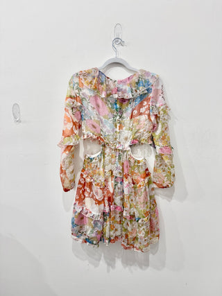 D'elle Collection Floral 3/4 Sleeve Cut Out Ruffle Mini Dress Multi Women's M