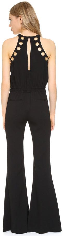 Derek Lam 10 Crosby Pebble Crepe Wide Leg Jumpsuit with Grommets Women's Black 6
