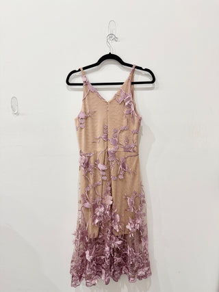 Dress the population Brown Sleeveless Dress w/pink flowers sewn on, Medium