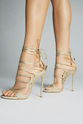 Dsquared2 Riri Glitter Lace Up Stilettos Strappy Cage Heel Gold Women's EU 39
