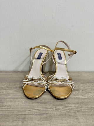 Emilio Pucci Leather Slip On Ankle Strap Strappy High Heels Gold Women's EU 39.5