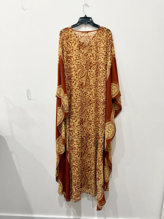 Elsa Cohen Floral Paisley Oversized Cover Up Kaftan Dress Brown/Yellow One Size