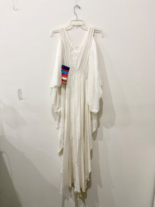 Elsa Cohen Embellished Sequins Cold Shoulder Cover-Up Maxi Dress White Women's M