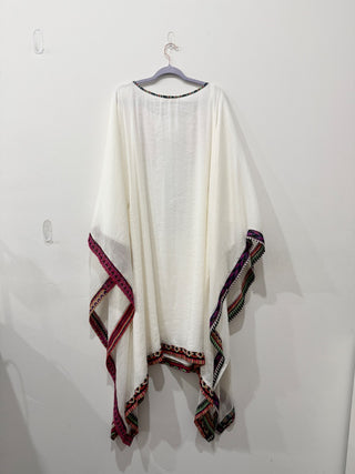 Elsa Cohen Fringe Embellished Oversized Kaftan Dress White Multi Womens One Size