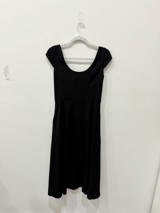 Emporio Armani Wool Cap Sleeve Scoop Neck Fit & Flare Midi Dress Black Women's 4