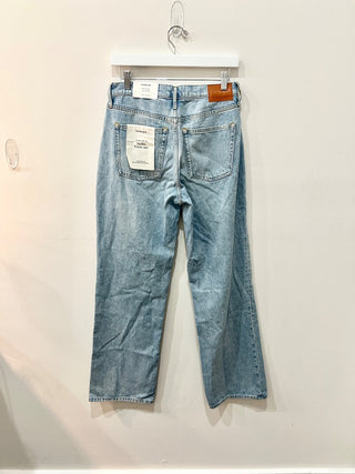 Enza Costa High Rise Pleated Cotton Straight Leg Pants Off White Womens Size 0
