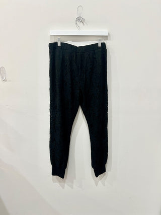 English Rose Short Sleeve Lace Trim Cropped Blouse Top Black Women's Size S