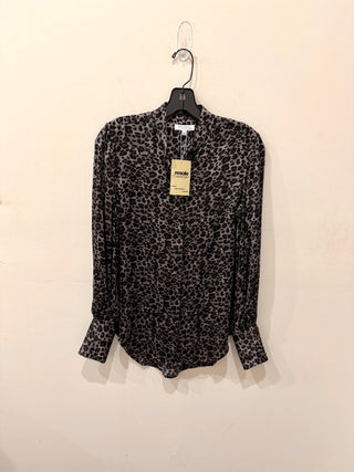 Equipment Femme 100% Silk Leopard Print Button Front Shirt Black Gray Womens XXS