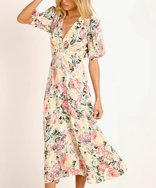 Faithfull the Brand Marie Louise Floral Puff Sleeve Midi Dress Yellow Women's 4