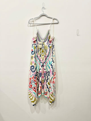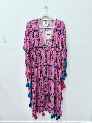 Figue Amrita Oversized Tasseled Pullover Caftan Dress Pink Blue Womens Size XS/S