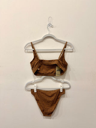 Fendi X Skims Logo Print Bikini Set; Bralette Top & Bikini Bottom Brown Womens L