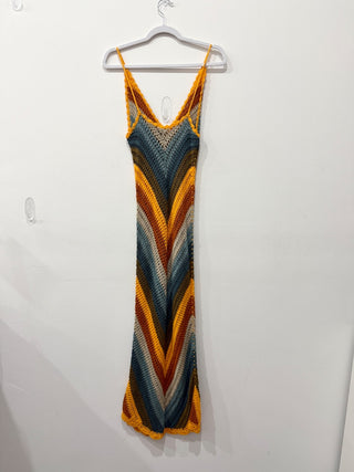 Free People Better Days Striped Henley Ruffle Hem Maxi Dress Red Combo Womens XS