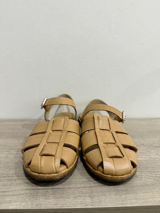 Freda Salvador Sera Leather Ankle Strap Fisherman Sandals Beige Womens Size US 9