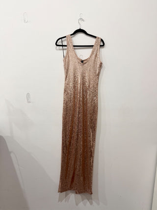 Forever 21 Embellished Sequins Sleeveless Maxi Tank Dress Rose Gold Women's M