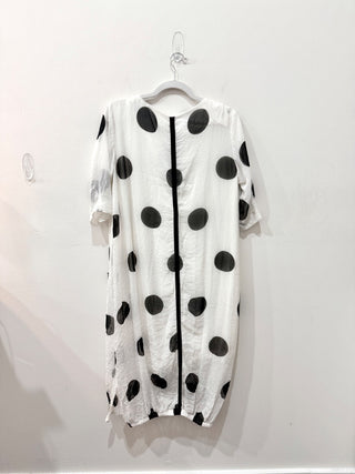 Gershon Bram Short Sleeve Midi Dress White with Black Dots Women's Size XS