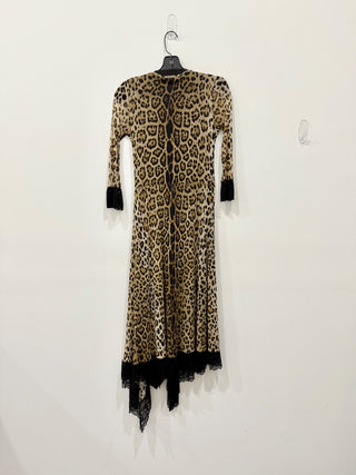 Ganni Sequin Embellished 3/4 Sleeve Mesh Asymmetric Hem Midi Dress Multi M / L
