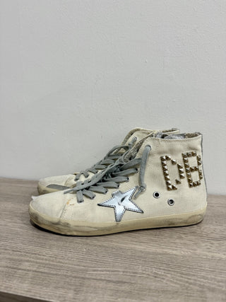 Golden Goose Francy Canvas High-Top Skateboard Sneakers Cream/White Womens EU 39