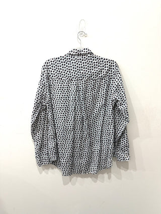 Grayson Anthropologie Floral Print Cotton Button Down Shirt White Blue Womens Size ???