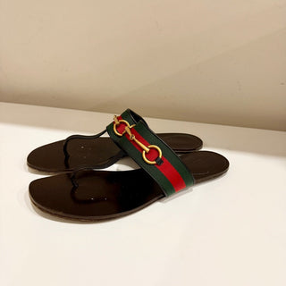 Gucci Querelle Leather/Canvas Horsebit Flat Thong Sandals Black Women's EU 39.5