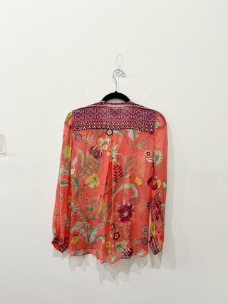 Hale Bob 100% Silk Floral Print Long Sleeve V-Neck Blouse Top Orange Women's XS