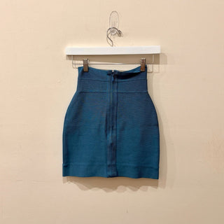 Herve Leger High Waisted Bodycon Bandage Pencil Mini Skirt Blue Women's Size XS