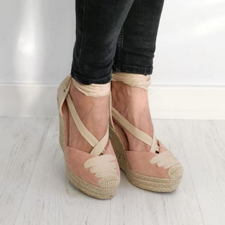J.Crew Lace-Up Canvas Raffia Wedge Espadrille Sandals Blush Pink Women's US 10