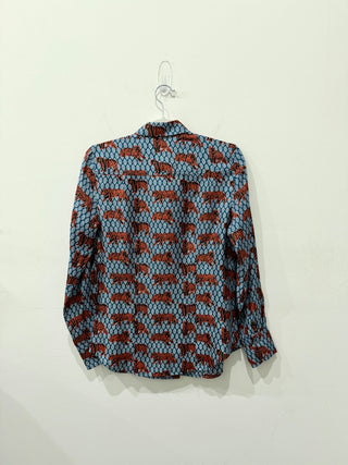 J.Crew Long Sleeve Leopard Print Tie Neck Button Up Shirt Brown Women's Large