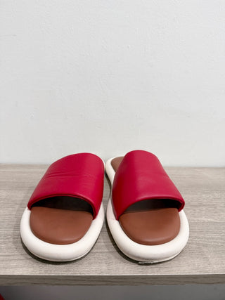 Italeu Leather Slip On Open Toe Flat Slides Sandals Red/Brown/White Womens EU 41