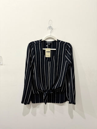 Karen Kane Striped Sky Country Flare Sleeve High-Low Blouse Navy Women's Small