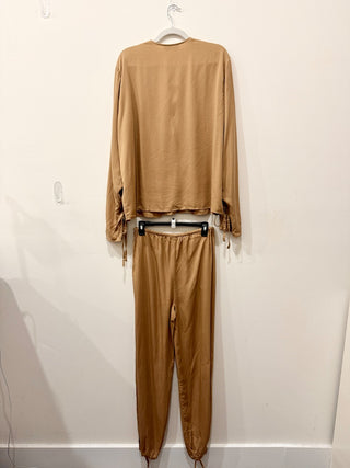 L'Academie The Alix Top & Feather Trim The Chantal Pant Beige Cream Womens Small
