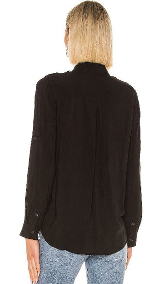 L'Agence Lunetta Roll Tab Sleeve Front Button Shirt Matte Black Women's Size XS