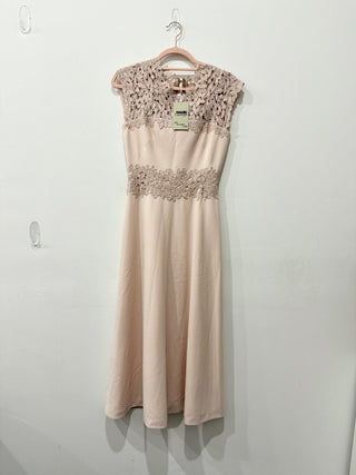 L.K. Bennett Selene Lace & Crepe Cap Sleeve Fit & Flare Midi Dress Blush Women 2