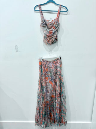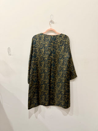 La Prestic Ouiston Mixed Pattern Silk Open Duster Blazer Green/Blue Women's M/L
