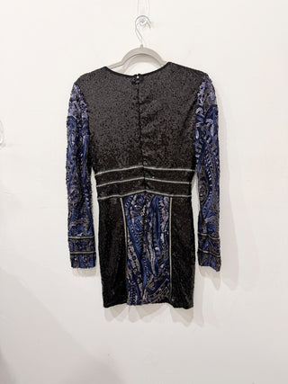 L'Agence Short Sleeve Geometric Sheath Mini Dress Black Women's Size US 8