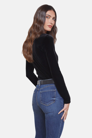L'Agence Kinley Velvet Long Sleeve Square Neck Top Black/Noir Women's Size Small