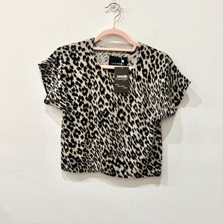 Le Superbe Frances Cropped Short Sleeve Leopard Sweater Tee Sand/Black Small