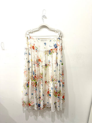 LAUREN Ralph Lauren Floral Tiered Georgette Peasant Midi Skirt White Womens 14