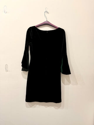 LAUREN Ralph Lauren Bell Sleeve Ruched Shift Velvet Midi Dress Moss Womens 12